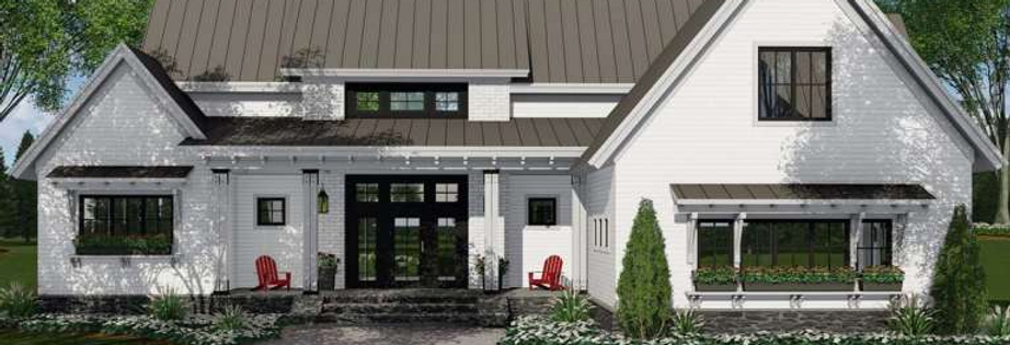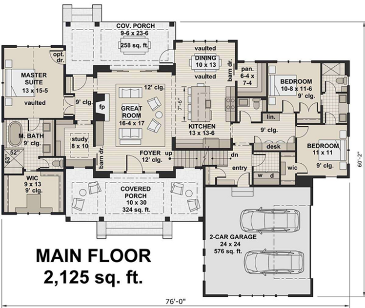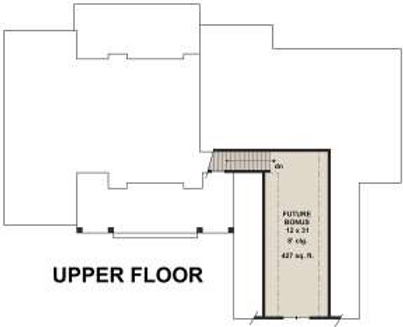 This house design offers beautifully blended exterior elements which create a welcoming and inviting front facade. Double gables on each end of the home and a center dormer shed add architectural interest and the overhead window awnings with exposed rafters are a nice touch. The beautiful front covered porch is a balanced space for friends and family before entering the home with its glass door and two delightful four-pane windows, double beam columns and a beautiful stone walk-up* that continues around the skirt perimeter of the house. The interior square footage of the home is approximately 2,125 square feet with three bedrooms and two plus bathrooms. However, there is an upper level with 427 square feet of optional bonus space that could be utilized as a fourth bedroom, a playroom or a multipurpose family room. The main floor of the home reflects a serious consideration of how families live and play with its open floor plan. The two-car side entry garage is spacious and leads directly into the family’s mudroom, utility room and the nearby command center with desk area.